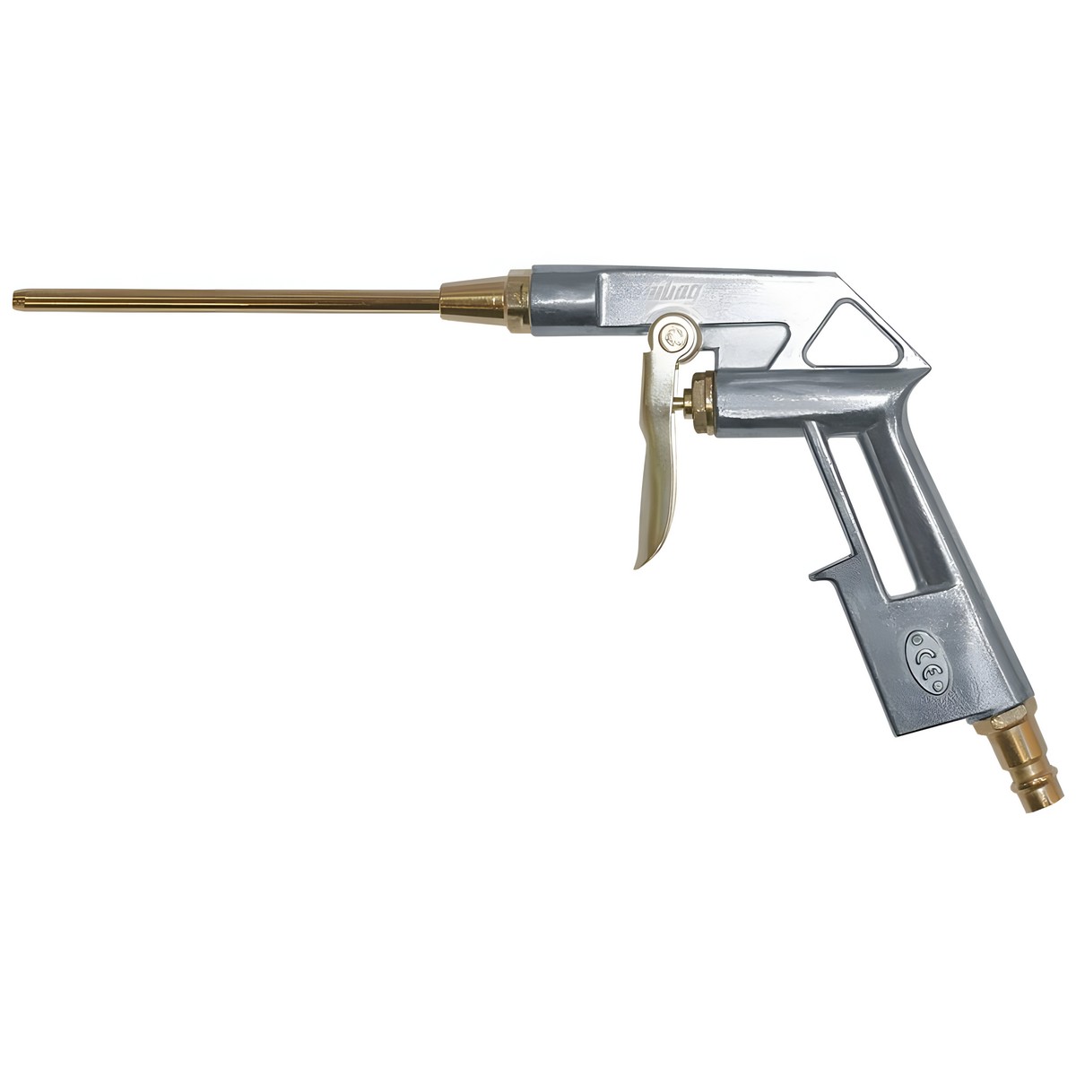 Пневмопистолет продувочный удлиненный в блистере. Длинный узкий носик позволяет работать в узких щелях и прочих труднодоступных местах. Корпус выполнен из металла.