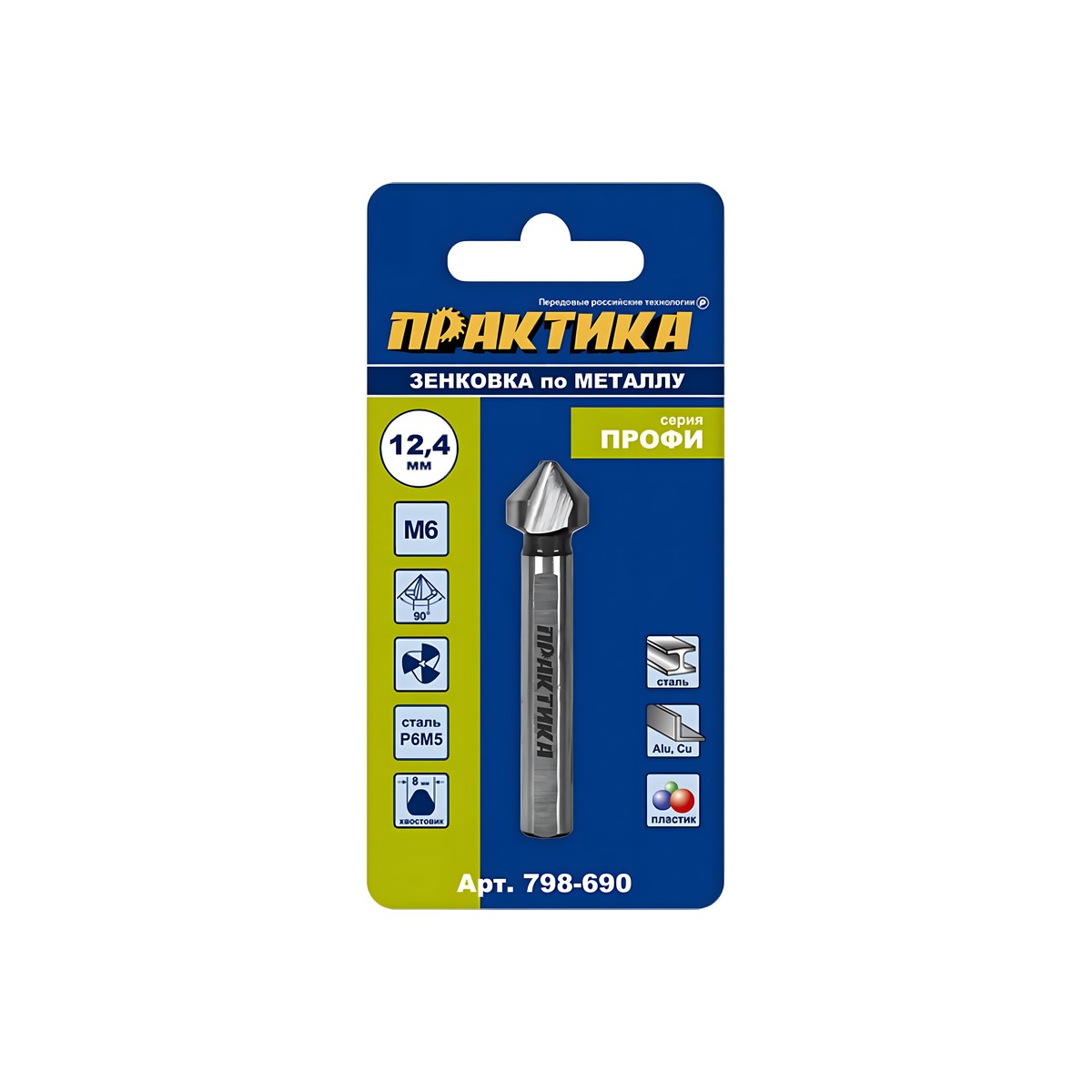 Зенковка по металлу 12.4 х 56 мм, 90 град., под резьбу М6 ПРАКТИКА 798-690