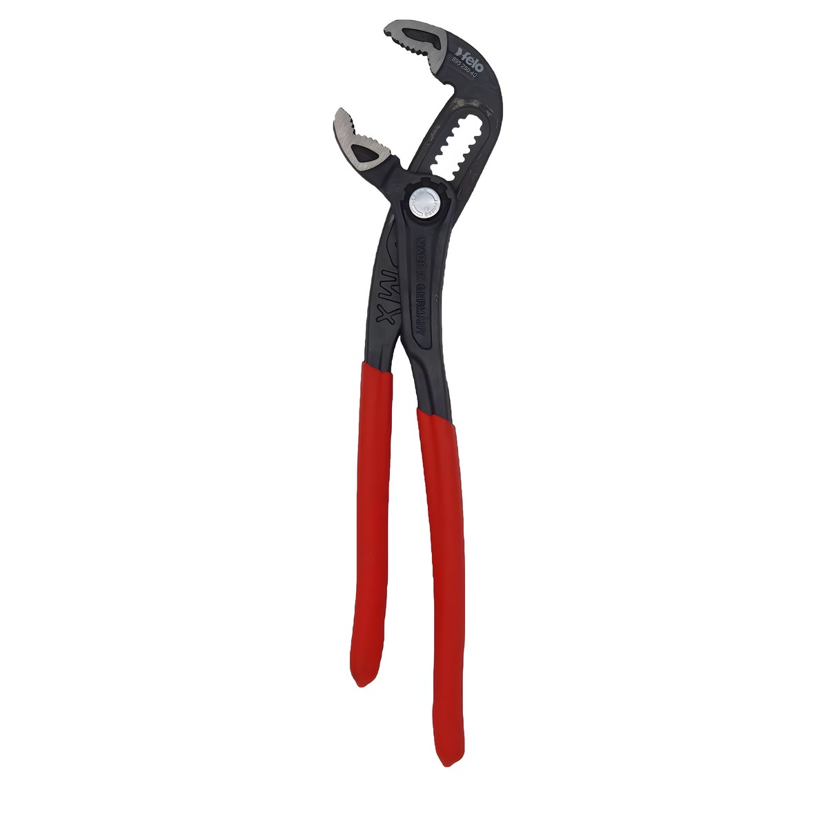 Клещи переставные Felo подходят для работы с разными деталями при проведении слесарных, монтажных, сантехнических работ, а также в строительстве для зажатия, зажима и обжатия заготовок. Механизм предусматривает 14 положений. Зев раскрывается на максимальное расстояние в 50 мм. Фиксация размера происходит нажатием на кнопку, которая полностью исключает нечаянную перестановку размера ключа. Зубчатая форма губок внутри предотвращает соскальзывание инструмента. При изготовлении деталей используется хромованадиевая сталь, прошедшая закаливание в масле. Ручки выполнены из пластика.