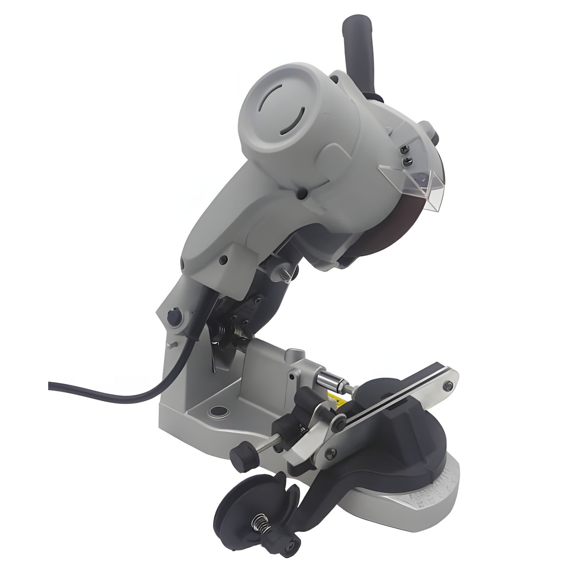 - Безопасная эксплуатация. Щиток из прозрачного пластика защищает оператора от искр, вылетающих в процессе эксплуатации станка для заточки цепей.