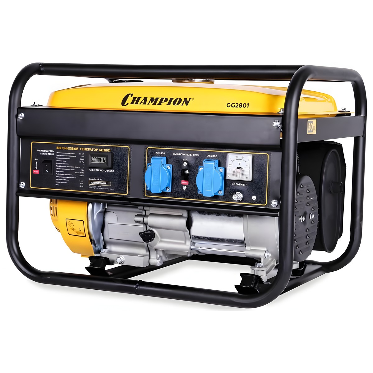 Генератор бензиновый Champion GG2801 - высокопроизводительное мощное устройство. С его помощью можно быстро запитать самую разную технику на даче, в загородном доме, на строительной площадке. Отличный вариант для автономного либо аварийного электропитания. Рекомендован для обеспечения энергией маломощных электроинструментов и бытовых электроприборов. Предусмотрена защита от перегрузок. Для этих целей предназначен вольтметр.
