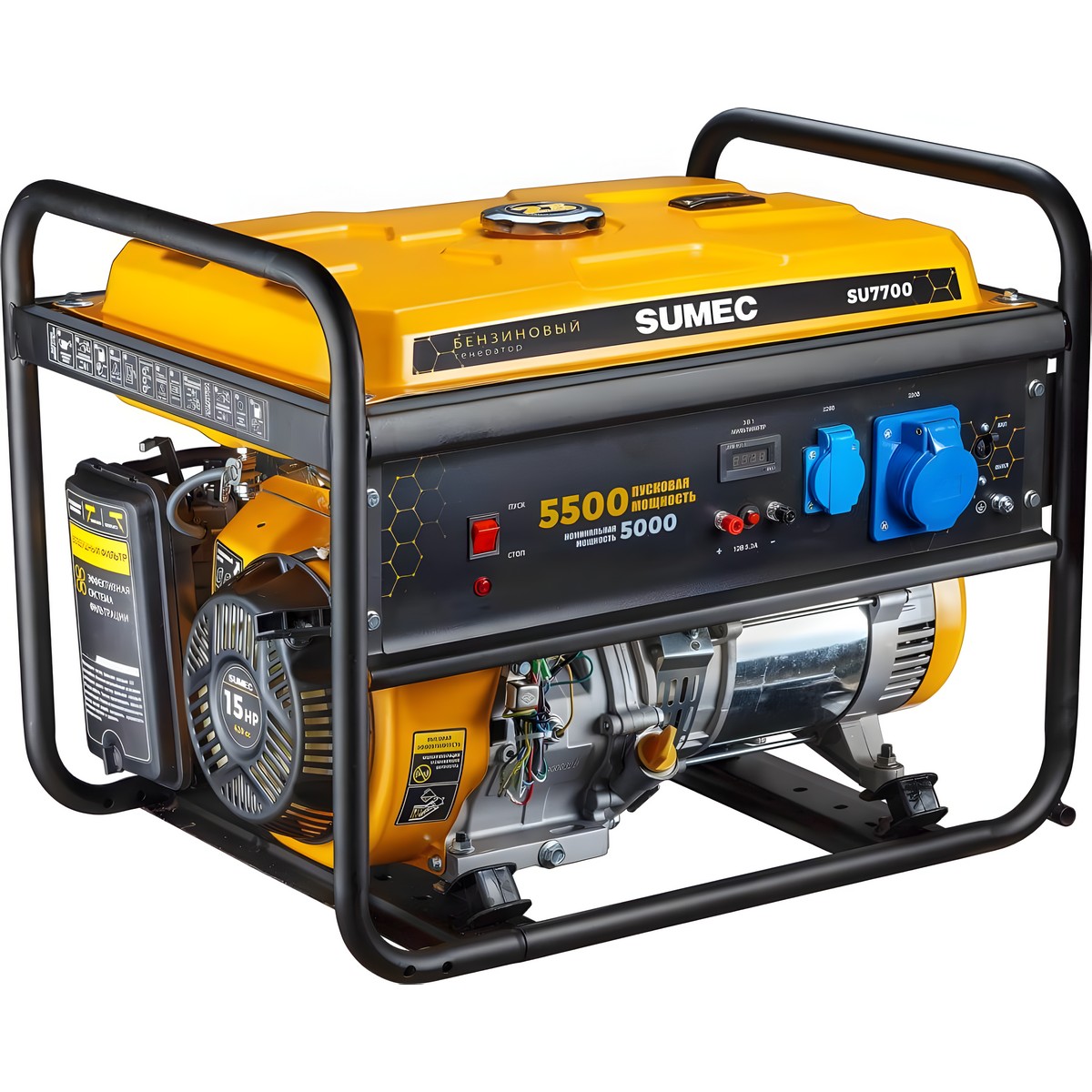 Бензиновый генератор SUMEC SU7700 номинальной мощностью 5 и максимальной мощностью 5,5 кВт. Двигатель бензиновый, одноцилиндровый, четырехтактный с воздушным охлаждением. Незаменим в походе, на рыбалке, на даче. Все генераторы серии имеют возможность установки транспортировочного комплекта, который позволяет без труда перемещать станцию в рабочей зоне.